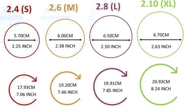 5.5 - 7" (14 - 17.7cm) 6.5 - 6.9" (16.5 - 17.5cm) 2.13 - 2.25" (54 -57mm)