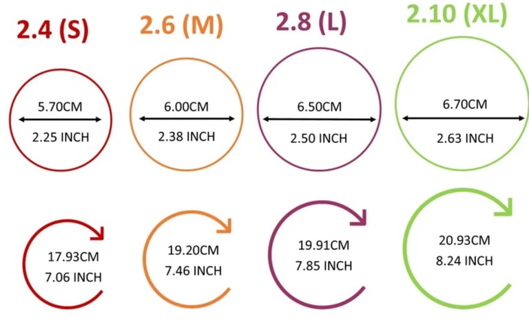 7 - 8" 17.7 - 20.3cm 7.2 - 7.7"18.5 - 19.5cm. 2.38 - 2.50". 60 - 64mm