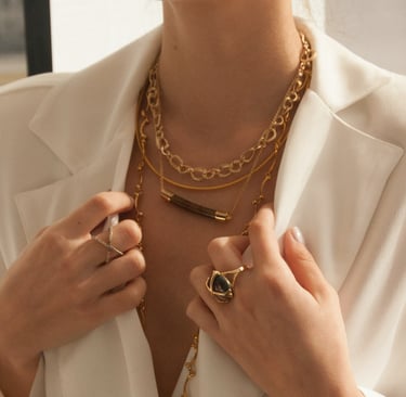 Layered Necklaces: Ideal for monochromatic outfits, adding depth and texture.